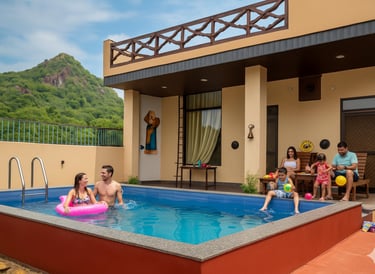 Live like royalty in a private pool villa at Aaram Bagh Resort Ranthambore. Enjoy personalized terrace tea, high tea evenings, delicious breakfasts at scenic spots, dinner at your villa, and a mesmerizing bush dinner at Jungle Farm. Best choice for those seeking privacy, luxury, and nature.