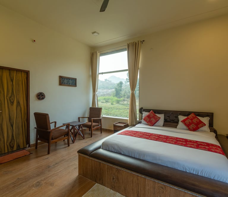 For those who seek serenity and stunning views, our Mountain View Rooms are the perfect choice. Overlooking the majestic Aravalli hills, these rooms invite you to unwind amidst tranquility and natural beauty.